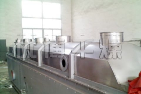 香料干燥機是由物料自進料進口進入機內,在振動力作用下,物料沿水平面流化床拋擲,向前連續(xù)運動,熱風向上穿過流化床同濕物料換熱后,濕空氣經旋風分離器除塵后由排風1:3排出.干...